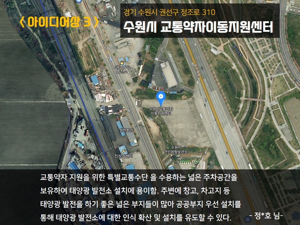 지난 한달간 많은 분들의 관심을 일으켰던 '여기서 햇빛발전 하자' 수원시 공공부지 찾기 시민공모대회가 마무리 되었습니다!!