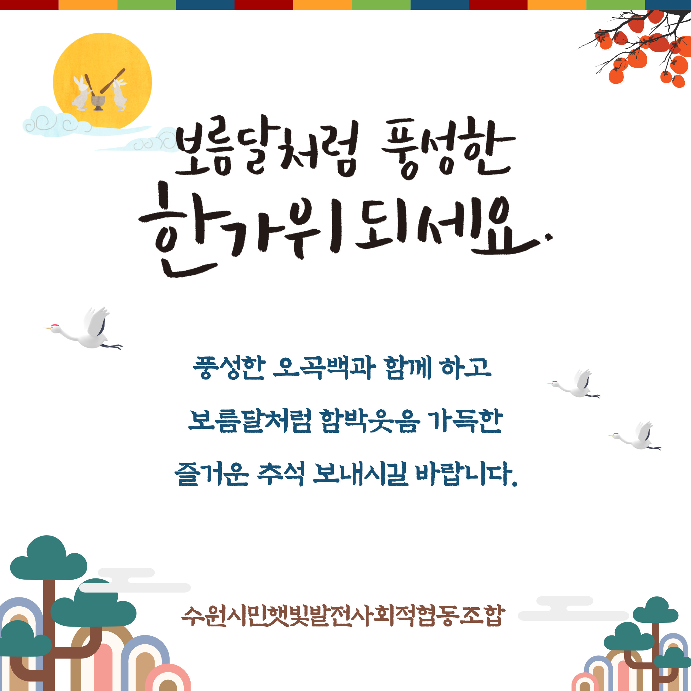 조합원님 가내 두루 평안하시길 기원하며, 보름달처럼 함박웃음 가득한 추석 명절 보내시길 바랍니다^^