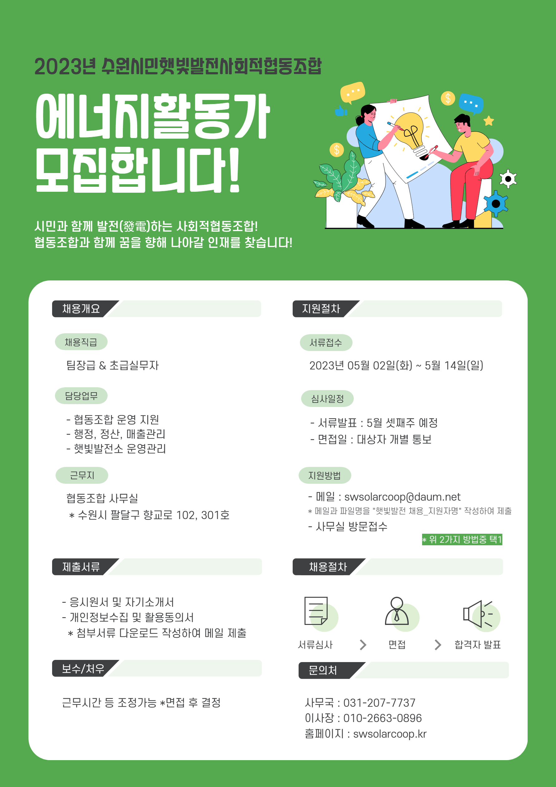 이메일과 파일명을 “햇빛발전 채용_지원자명”으로 작성하여 제출
