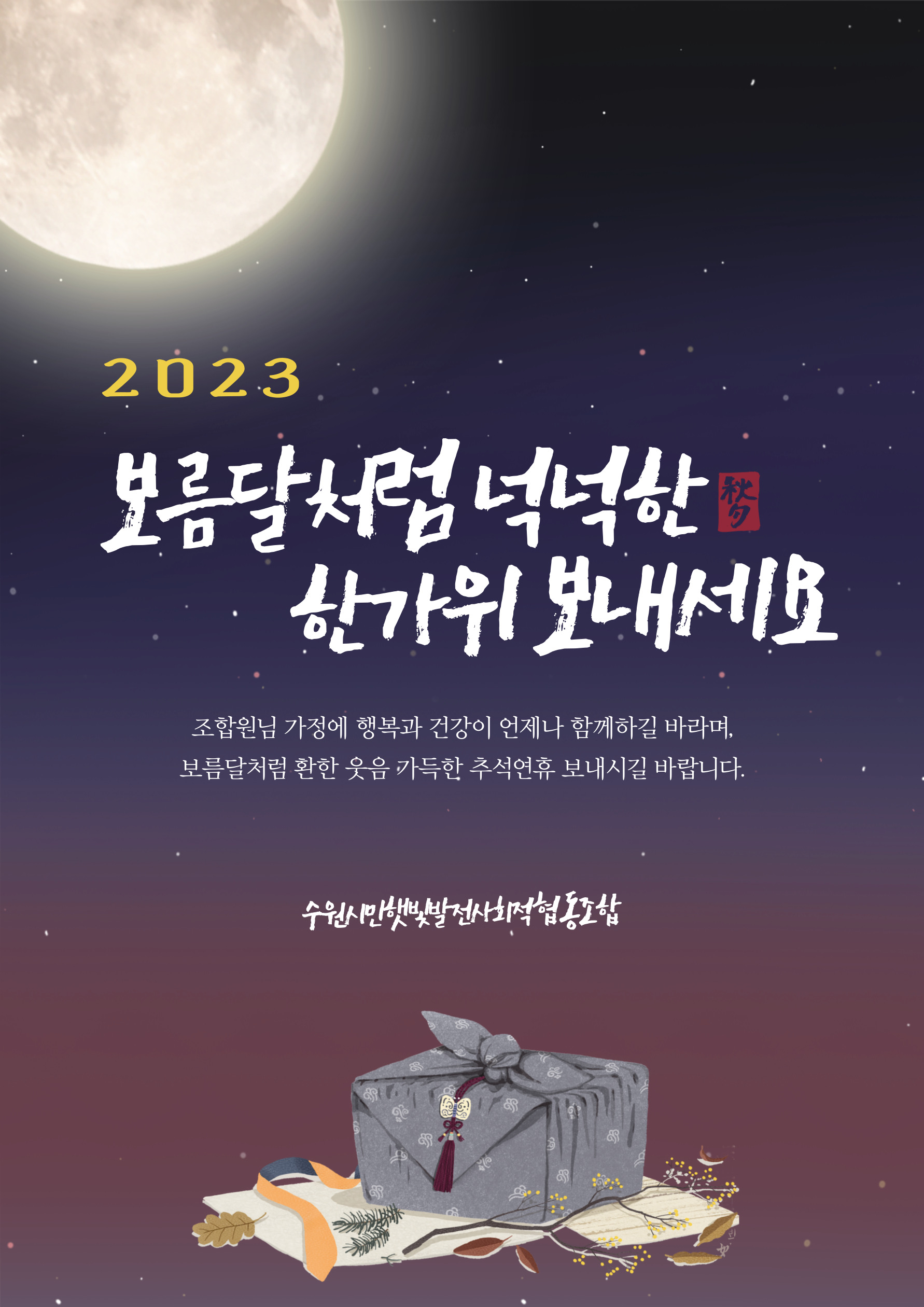 환한 빛 가득한 보름달을 보며 조합원님 가정에 언제나 평화가 깃들길 빌겠습니다~!!