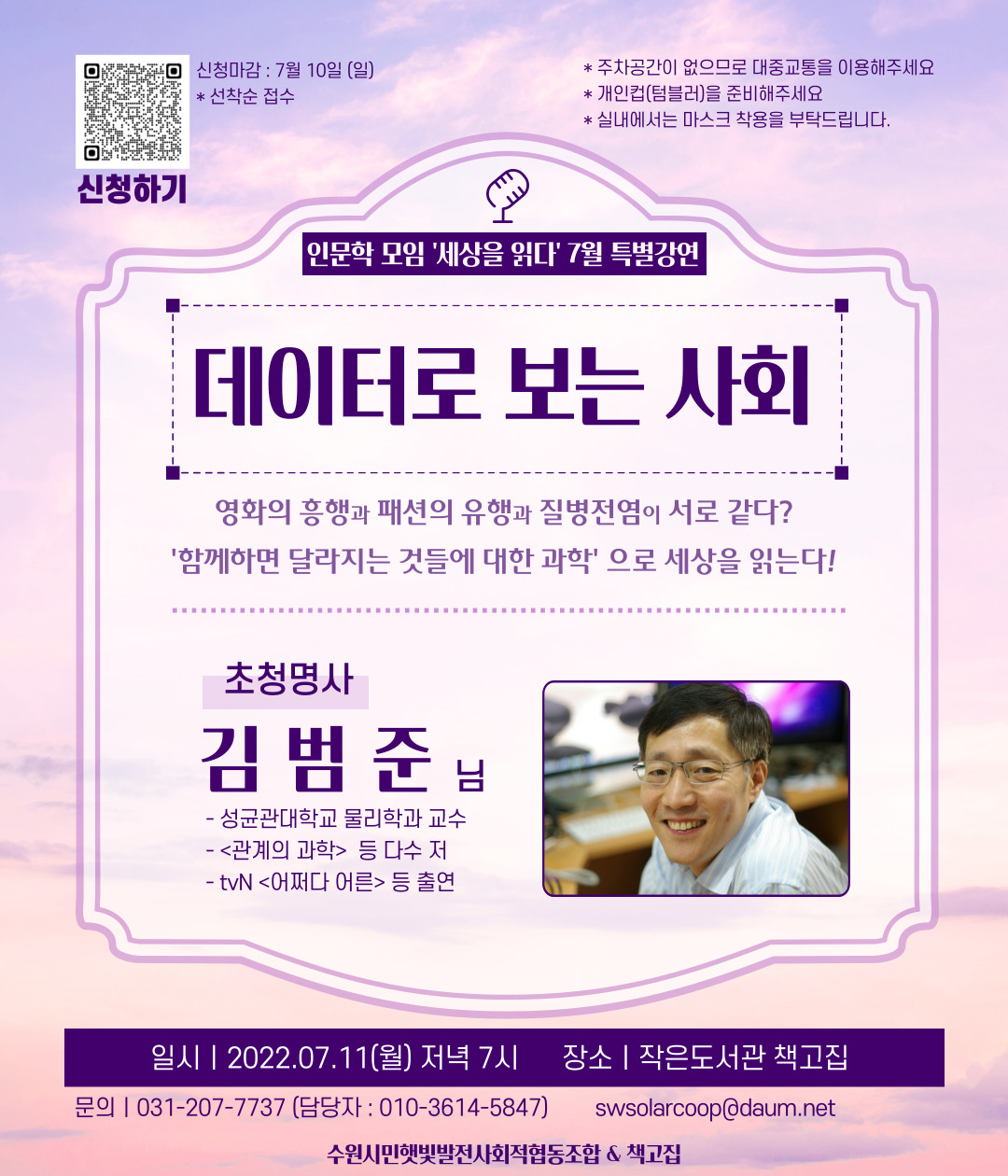 7월 11일 오후 7시, 작은도서관 책고집에서 통계물리학자 김범준 교수님을 모시고 이야기를 듣는 자리를 마련했습니다!