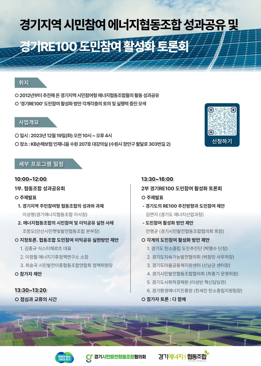 지난 2012년부터 경기지역을 중심으로 진행된 시민참여형 에너지협동조합들의 활동성과를 공유하고