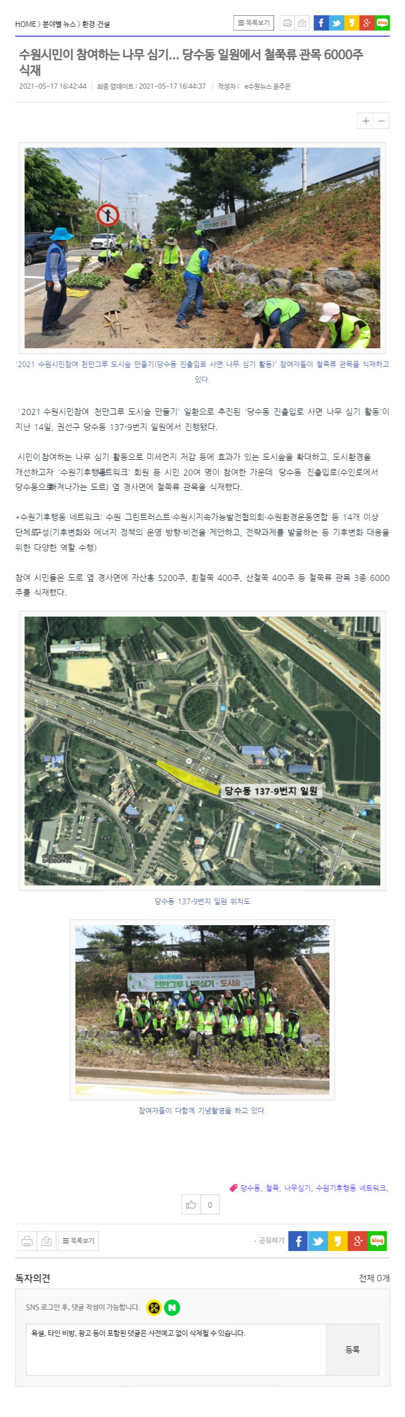 [e수원뉴스] 수원시민이 참여하는 나무 심기... 당수동 일원에서 철쭉류 관목 6000주 식재 (05.17)